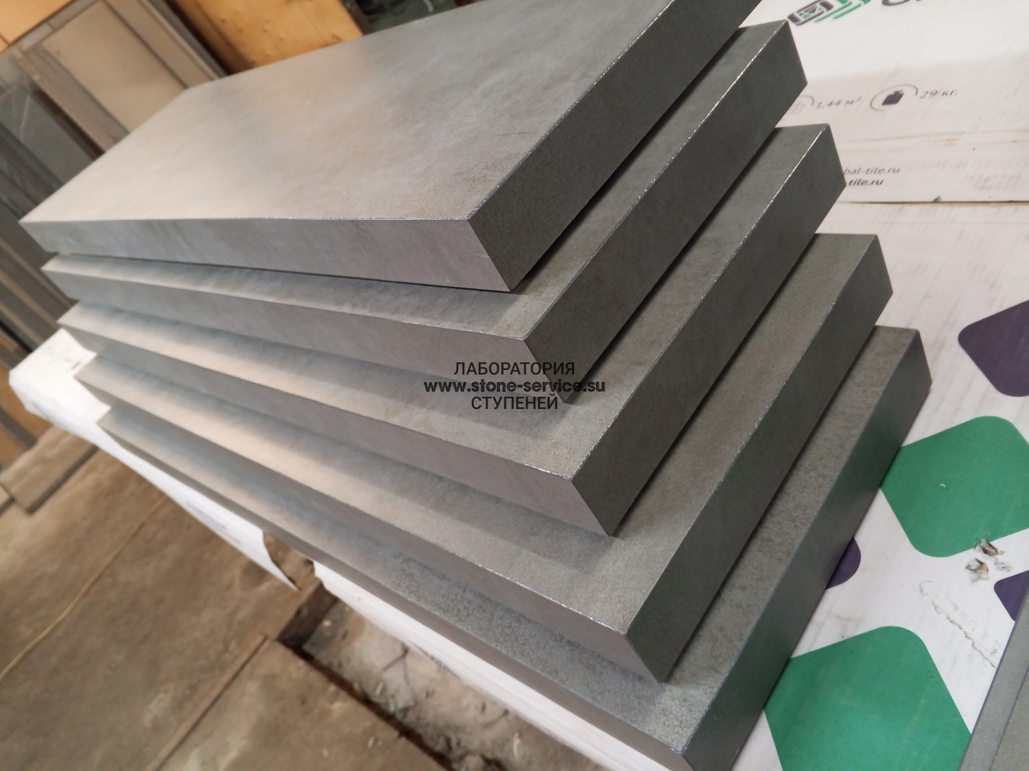 Ступени любых размеров - от стандартных (300х300мм, 450х450, 300х600, 300х1200, ) до из керамогранита завальцованным краем и полосами противоскольжения.
