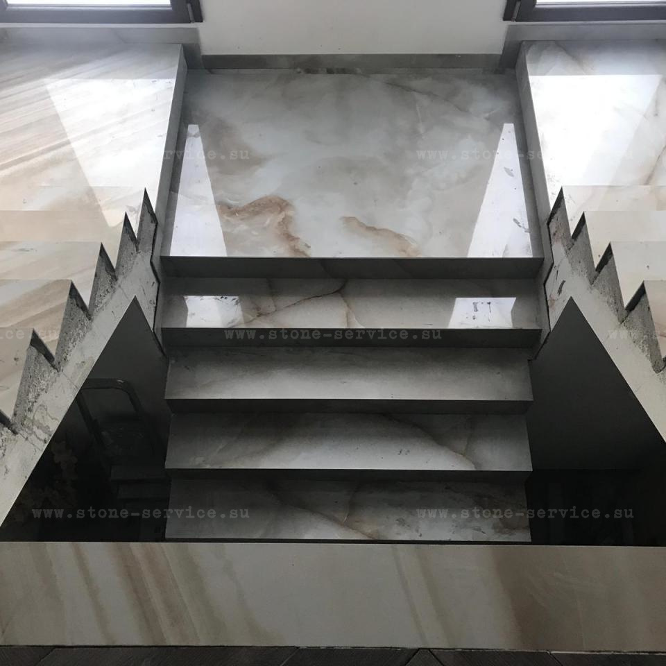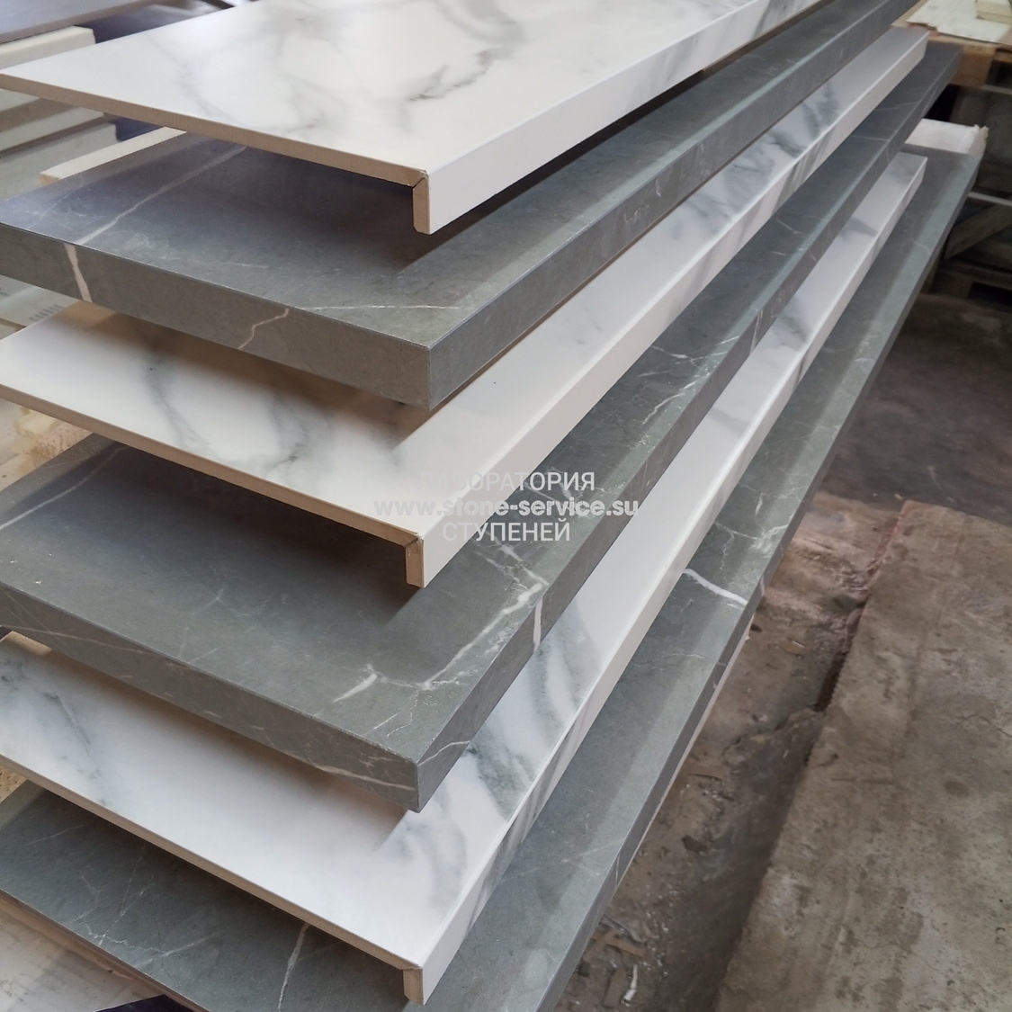 Мы производим ступени из керамогранита под мрамор двух видов: